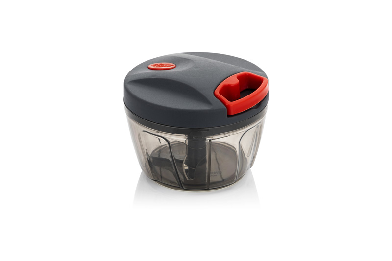 This compact manual food chopper is designed to make everyday kitchen prep quick and effortless. Featuring sharp stainless-steel blades and a sturdy pull-cord mechanism, it efficiently chops vegetables, fruits, herbs, nuts, and more in seconds. The transparent container allows you to monitor the chopping consistency, while the secure lid ensures safe and mess-free operation. Its ergonomic grip and non-slip base provide comfortable handling, making it ideal for fast, hassle-free cooking. Easy to use, easy to clean, and perfect for modern kitchens.